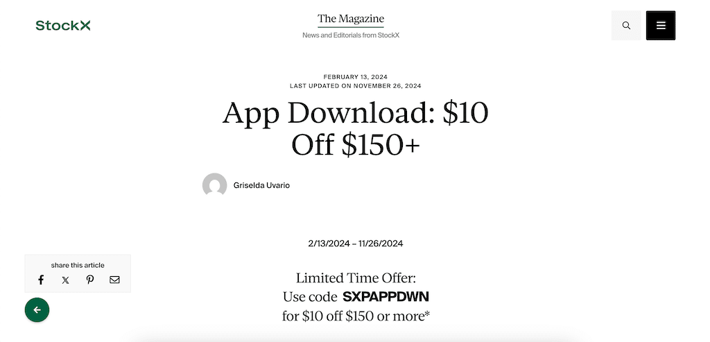 現在、STOCKXには次の割引コードとプロモーションオファーがあります。